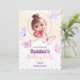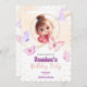 Faça seu dia especial ainda mais mágico com este adorável Convite de aniversário de Bebê! Apresentando uma doce menina de desenho animado em uma roupa rosa cercada por delicadas borboletas rosa e roxas, esta design exude calor, alegria e charme. As bordas escaldadas e os tons pastéis suaves criam um sentimento sonhador e caprichoso - perfeito para o primeiro aniversário do bebê ou qualquer pequena celebração princesa. Personalize com os detalhes do seu próprio partido para um convite digno de manutenção que irá agradar aos seus convidados.
