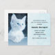 Convite de aniversário cartão postal com uma fotografia adorável de um gatinho branco de pelo curto com olhos azuis brilhantes. Olhando para longe. Patas cruzadas de forma típica de gato.