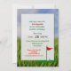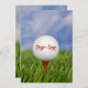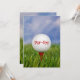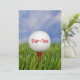 Bola de golfe branca sobre a teta vermelha na grama verde para a festa de aniversário Todo o texto é editável.