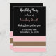Um fundo preto acentuado por uma borda de listras cor-de-rosa e castanhas de chocolate. Personalize com todas as informações de aniversário conforme desejado.