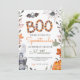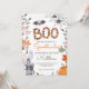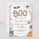 Adorável convite festivo de halloween que inclui fantasmas, abóboras, morcegos, aranhas e folhas de outono.