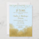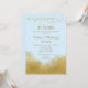 Um convite de festa de aniversário de casamento elegante em azul pastel e dourado, apresentando poeira de confete dourado no topo e brilho dourado no fundo.
