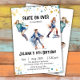 Este convite de aniversário de patinação no gelo é parte de um conjunto de acessórios de festa de aniversário correspondente. Sua aniversariante vai aproveitar cada momento do dia especial. Este design apresenta os vários tons de azul, além de fontes fáceis de ler, e muito espaço para adicionar todas as suas informações exclusivas.