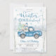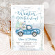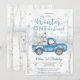 Celebre o dia especial do seu pequeno com este encantador convite de aniversário Winter ONEderland. Com uma cena de bosque nevado com bétulas, flocos de neve e um caminhão azul vintage carregando presentes e um boneco de neve, este design captura perfeitamente a magia de uma celebração de inverno. Fontes elegantes em azul gelado e branco adicionam um toque festivo, tornando-o ideal para uma festa de primeiro aniversário. Personalize facilmente com os detalhes do seu evento e crie um item de recordação que os convidados vão adorar.
