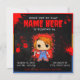 Uma imagem gráfica estilizada apresenta Chucky, a icônica boneca de terror, em um Pop! Formato do vinilo. A boneca é representada contra um fundo escuro, texturizado, espalhado com manchas vibrantes de sangue vermelho e efeitos de derrame. Personalize-o com os detalhes do evento para torná-lo exclusivamente seu! Disponível como convites imprimíveis e downloads instantâneos.