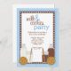 Convite de aniversário de Leite e Cookies Azuis e Castanhos apresenta Leite Branco e Chocolate e cookies Chip. Alguns elementos, Sanqunetti Design.