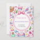 Um convite moderno e na moda para uma festa de aniversário spa de meninas. Um passado bonito e colorido com todas as coisas relacionadas ao spa para as jovens raparigas se entregarem. Maquiagem, pantufas, arcos, poções e uma bela borda moldando o texto para o seu convite de festas de sono. Este convite está pronto para ser personalizado com as informações da parte na frente e no verso, conforme desejar.