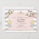 Convite de aniversário rosa e cinza de lama. Idade nos balões. Aquarela. Daisies.