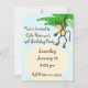 Convite de festa de aniversário de macaco fofo feito em um fundo azul com gráficos adoráveis de um macaco pendurado em uma videira. Personalize todos os campos de texto de acordo com as suas necessidades, com estilo, cor e tamanho do texto.