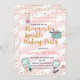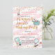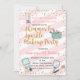 convite de aniversário de maquiagem de menina rosa com confete de ouro