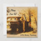 Um desenho de retrato esboçado em tom sépia criado a partir de uma imagem fotográfica em um antigo álbum de fotos. Um casal bem vestido fica ao lado de um automóvel antigo em algum momento dos anos 40 ou 50. Moda elegante da época com chapéus e ternos.