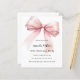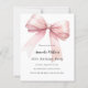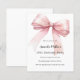 Um fundo branco, decorado com um grande laço rosa. Personalize e adicione um nome e detalhes da festa.