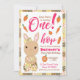 Convite de Aniversário de Coelhinho Fofo tem uma borda em estilo patchwork e parte de trás. Todos os gráficos são desenhados à mão. Você pode personalizar o nome da criança e os detalhes do aniversário.
