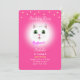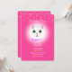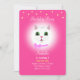 Lindo gato branco e estrelas em convite de festa de aniversário de menina rosa magenta. O texto está pronto para ser personalizado.