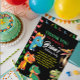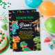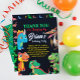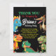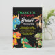 Torne o aniversário do seu pequeno ainda mais especial com este adorável cartão de agradecimento temático de dinossauros! Com dinossauros de desenho animado coloridos e fontes divertidas, este design é perfeito para expressar gratidão aos convidados que tornaram a celebração dino-mágica! Totalmente personalizável com o nome da criança e detalhes da festa, este cartão divertido e vibrante é uma ótima maneira de mostrar apreço com um sorriso rugindo. Perfeito para amantes de dinossauros e temas de festa pré-históricos!