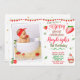 Convite de aniversário de morango com foto Festa de primeiro aniversário doce como mirtilo para qualquer idade, convite editável.