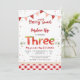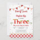 Celebre o dia especial do seu pequeno com este encantador convite de aniversário temático de morango. Com características de bandeirolas vermelhas e rosadas, bolinhas e ilustrações doces de morango, este design é perfeito para uma festa doce de frutas. Personalize com o nome da criança, idade e detalhes do evento para criar um souvenir único. Ideal para aniversários de verão, este convite alegre define o tom para uma celebração divertida e festiva.