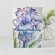 Convite de aniversário de mulher com arte de íris roxa em aquarela. Criado a partir da minha pintura original em aquarela.