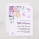 Um fundo de cor lilás macio. Decorados com um rosa lilás, roxo e eucalipto verde e borboletas, de cor aquosa. Personalize e adicione seu nome e detalhes da festa. 1 folha = 1 convite impresso de borda a borda.