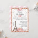 Um convite de aniversário bonito, rosa e elegante, para o parisiense