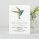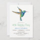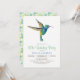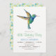 Convite de aniversário de beija-flor. O convite apresenta um Hummingbird verde e azul e um padrão floral.