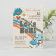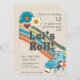 Chamada de Aniversário de Pista de Groovy com esquema de cores de 70. Flores, corações, retrorreflectores e uma estaca de rolo.