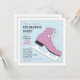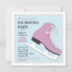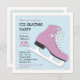 Um skate de gelo giro e engraçado em um padrão de diamante roxo colorido, colocado sobre um fundo de neve de azul gelado, decora esse convite de aniversário feliz, giro e gelo patinando sobre o tema.