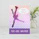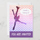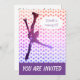 Convite de aniversário moderno de patinagem no gelo com silhueta de patinador artístico feminino e estrelas (Rosa a roxo). Os campos de texto personalizados são fornecidos para facilitar a adição dos detalhes do evento - nome, idade, data, hora, local e outras informações de que você possa precisar.