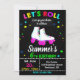 Convite de aniversário de patins para menina, convite de festa de patinação.