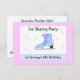 Um design divertido para uma festa de patins. Uma borda mauve com um centro branco com um skate de gelo azul com flocos de neve ao redor. Personalize conforme desejado com as informações de sua parte.