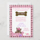 Comemore o aniversário do seu cachorro com uma festa de animais. Este belo convite tem um filhote com um arco rosa e a palavra woof. Convide todos os companheiros e amigos do seu filhote. Adicione os detalhes da sua festa para o convite de aniversário perfeito. O osso castanho tem as palavras Pet Party.