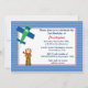 Este convite de aniversário 5x7 tem um fundo de faixa azul com um avião voando e um piloto na parte inferior. Você pode personalizar facilmente suas informações à direita. ©2010 JD Digi Designs