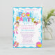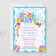 Esta convite de festas de aniversário fofa apresenta texto divertido de verão e meninas nadando em fundo azul e branco. Perfeito para comemorar seu aniversário de meninas! É fácil personalizar com opções personalizadas. Use o botão 'Personalizar o produto' para personalizar o produto ou adicionar texto.