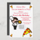 Um convite de aniversário no estilo de pizza kawaii que é perfeito para aqueles que estão fazendo uma festa de pizza e querem fazer isso em estilo bonito.