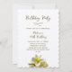 Cartões brancos elegantes de festa de aniversário com grandes flores de plumeria havaiana no fundo. Fontes modernas, com texto curvo, "Estamos comemorando!" no topo. Modelos fáceis de usar, opções de borda (mostradas em escala) e upgrades de papel para tornar esse convite de festas de temas tropicais ainda mais especial. O reverso é o padrão das cinzas prateadas.