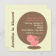 Um convite de aniversário para suínos, com uma ilustração de um porco rosa, em pé numa poça de lama no fundo. Personalize o número (lama) do porco com a sua idade. Personalize o título em marrom à esquerda, assim como os detalhes de sua ocasião em rosa e bege no centro sobre ponto marrom.