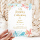 Belo convite de aniversário de praia com coral, estrelas-do-mar e conchas. Personalize para qualquer idade ou marco como um 15, 16º, 21ruas, 30, 40º, 50º, 60º ou 70! Cores de coral rosa, turquesa e ouro.