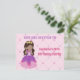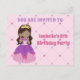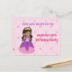 Este convite de cartão postal de aniversário de princesa cor-de-rosa apresenta uma linda menina hispânica usando um lindo vestido de baile cor-de-rosa. Personalize este convite de festa infantil fofo com o nome da sua criança em lindo roxo e escreva seus detalhes no verso.