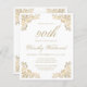 Este convite para bolsas mensageifestas de aniversario elegante apresenta uma imagem dourada antiga em quatro cantos. O número de aniversário editável e o nome do convidado de honra aparecem no script ouro do ornamentado, com o resto do texto personalizável na fonte da placa de impressão dourada. O mesmo quadro dourado aparece no verso.