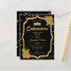Convite de Aniversário de Quinceañera Preto, Dourado e Branco. Design com brilho dourado falso. Perfeito para uma celebração elegante e glamorosa. A fonte da quinceañera está incrustada com diamantes.