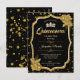 Convite de Aniversário de Quinceañera Preto, Ouro Branco. Design com brilho dourado falso. Perfeito para uma celebração elegante e glamorosa. A fonte da quinceañera tem diamantes embutidos.