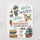 Marque uma aventura com nosso Convite de aniversário do Ahoy Pirate Boy. Este convite emocionante e brincalhão apresenta elementos temáticos piratas como tesouros, crânio e bósforos, e naves à vela, perfeito para a celebração de aniversário do seu pirata. Ideal para uma aventura no alto mar, este convite dá o tom para uma festa cheia de diversão e memorável. Personalize-o com os detalhes do evento para criar um convite exclusivo e cativante que terá os seus convidados prontos para se juntarem à tripulação. Arrr matey!