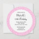 O convite de aniversário de uma garota bonita apresenta um rosto cor-de-rosa, com olhos azuis, pestanas compridas e lábios cor-de-rosa, rodeados por uma borda de bolinhas rosa e branca. O texto original diz "Você é convidado para uma Festa de aniversário". O verso do cartão tem detalhes de festa para personalizar.
