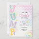 Faça seu próximo aniversário ser especial com este lindo convite de aniversário inspirado em saltos de trampolim pastel.