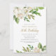 convites de festas de aniversário de 30 anos com impressão personalizada de barato com uma elegante borda floral pintada com sotaques de folha de ouro brancos, verdes e falsos. Personalize o modelo com os detalhes do evento ou use as ferramentas de design para personalizar o texto, escolha qualquer cor de fundo e edite as fontes para criar seu design exclusivo de convite de aniversário. O verso apresenta um fundo verde bonito ou usa o espaço para adicionar texto ou fotos, se necessário. Este lindo design floral neutro é perfeito para qualquer estação.