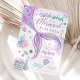 Crie um impacto com este convite de aniversário de sereia caprichoso, perfeito para crianças que amam o oceano! Com uma cauda de sereia vibrante em tons de roxo, rosa e turquesa, rodeada por conchas, estrelas-do-mar, coral e bolhas, este design captura a magia de uma fantasia submarina. Ideal para aniversários de meninas, este convite personalizável adiciona um toque lúdico à sua celebração, mantendo todos os detalhes importantes lindamente exibidos. Uma escolha encantadora para o grande dia de qualquer pequena sereia!