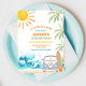 Crie ondas com este convite de aniversário vibrante com tema de praia e surfe! Com um sol alegre, palmeiras, ondas do oceano, uma prancha de surfe e uma van Volkswagen retrô, este design define o tom perfeito para uma celebração cheia de diversão. Ideal para aniversários de crianças, este convite colorido captura o espírito despreocupado do verão e certamente vai entusiasmar os convidados. Personalize com os detalhes da festa para criar um souvenir único que combina com o dia especial do seu filho.