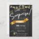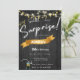 O simples, mínimo preto e branco, o convite digital surpreendente da festa de aniversário com fundo de madeira e placa de ouro.