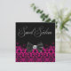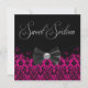 Convite de aniversário de dezesseis anos cor de rosa elegante com laço preto. Adicione seus detalhes na frente e no verso simplesmente escolhendo o botão laranja "Personalizar!" para começar a adicionar os detalhes do seu evento, estilo de fonte, tamanho e cor da fonte e texto. Por favor, note que todos os desenhos de convite que você encontrará no Zazzle são gráficos impressos em papel simples sem joias, laços, relevos, rebaixados ou peças ou partes adicionadas.