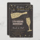 Convite de Chalkboard com Giz e Confete para Jantar de Aniversário de Casamento com Taça de Vinho com Diamante Dourado
